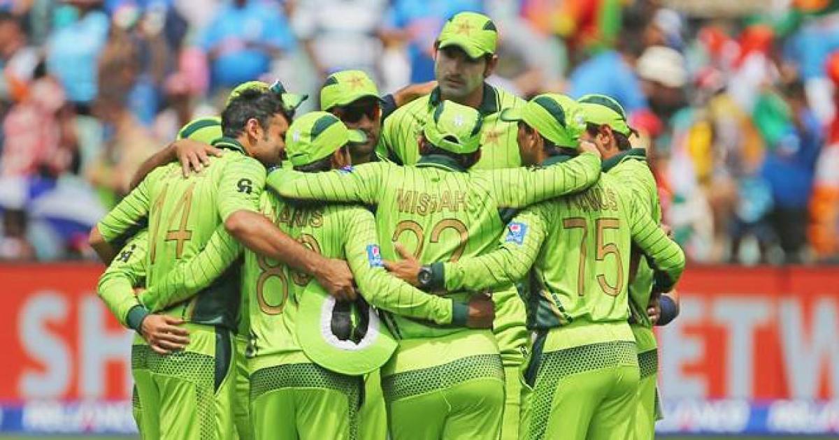 Pakistan players in a huddle during the 2015 World Cup match against India. Photograph: Scott Barbour/Getty Images
