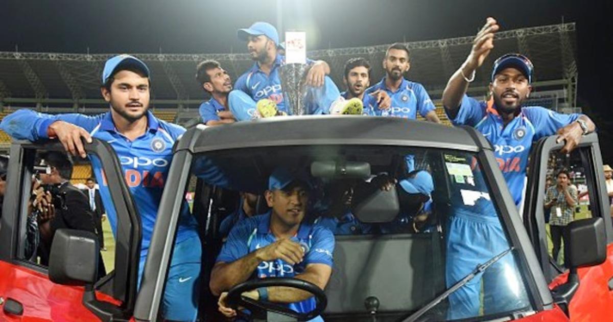 Mahendra Singh Dhoni took charge of the celebrations post India’s whitewash win over Sri Lanka, in Colombo, on Sunday.
