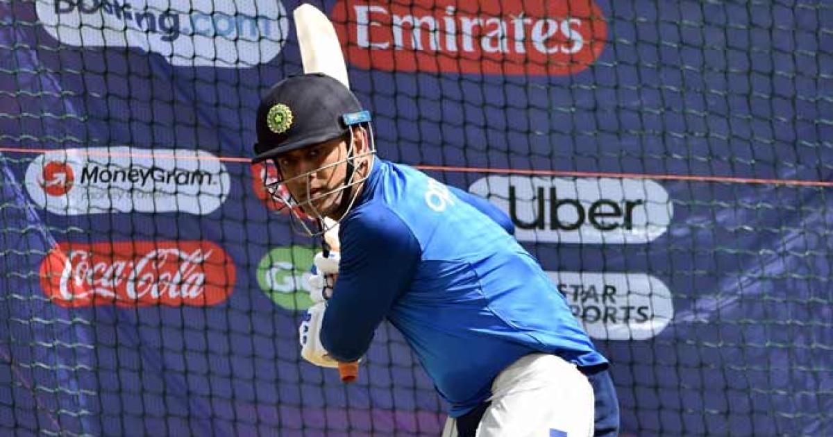 IMAGE: Mahendra Singh Dhoni during India's net session at Edgbaston. Photograph: Nathan Stirk/Getty Images
