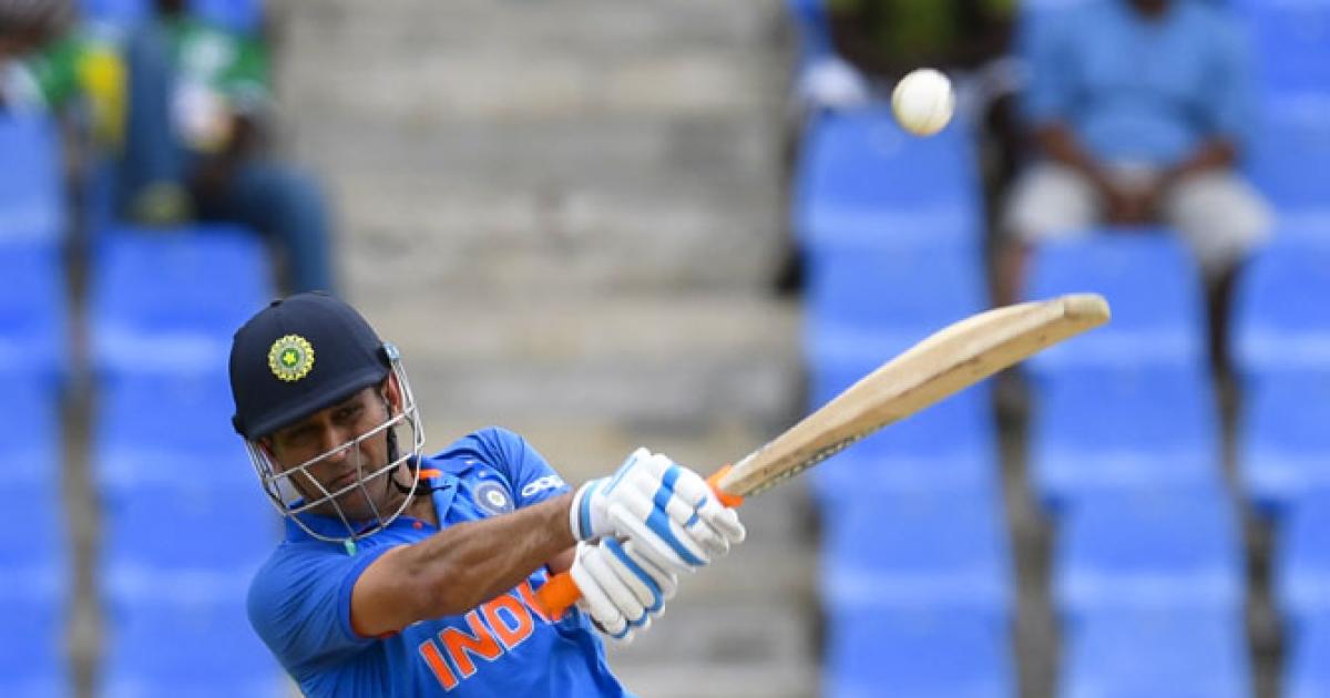 Dhoni took the innings forward after Rahane perished to a spectacular running catch from Bishoo in the deep, in the 43rd over.