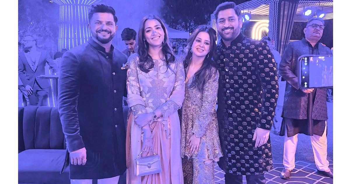 Sakshi and Mahendra Singh Dhoni caught up with Priyanka and Suresh Raina in Mussoorie on Tuesday evening for the wedding of Rishabh Pant's sister.