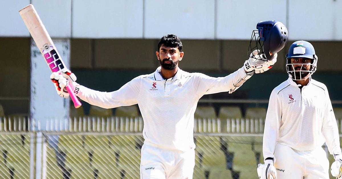 He enjoyed a solid opening stand of 103 with Hyderabad's Tanmay Agarwal (43) and another 128 for the second wicket with Karnataka southpaw DevduttPadikkal (57), batting through the 81 overs during the day.