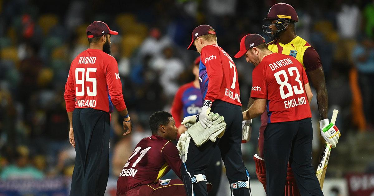 England held their nerve in the face of a late assault by Akeal Hosein and Romario Shepherd to secure a one-run victory over the West Indies in Bridgetown on Sunday and level their five-match Twenty20 International series at 1-1.