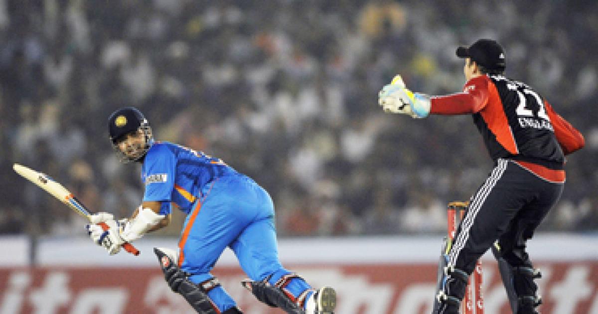 After England scored a competitive 298 for four, the home side rode on Ajinkya Rahane's 91 and captain Mahendra Singh Dhoni's calculated onslaught to overhaul the target with four balls to spare.