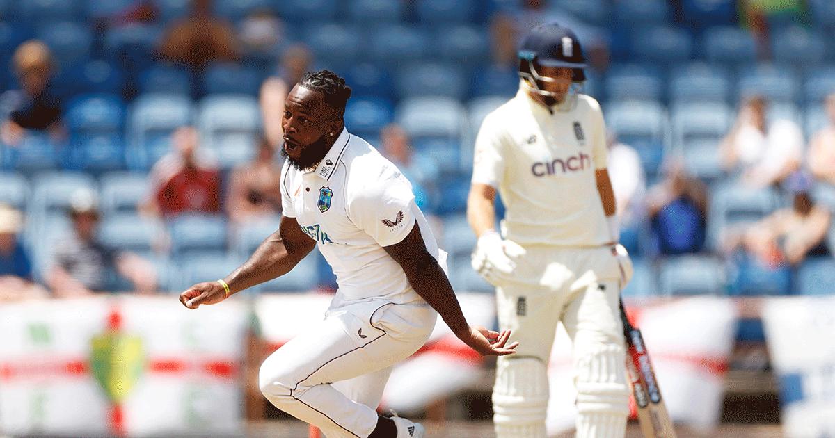 Kemar Roach and Alzarri Joseph each claimed two wickets, while Jayden Seales picked up three, including two beauties which bowled Ben Foakes (7) and Chris Woakes (25).