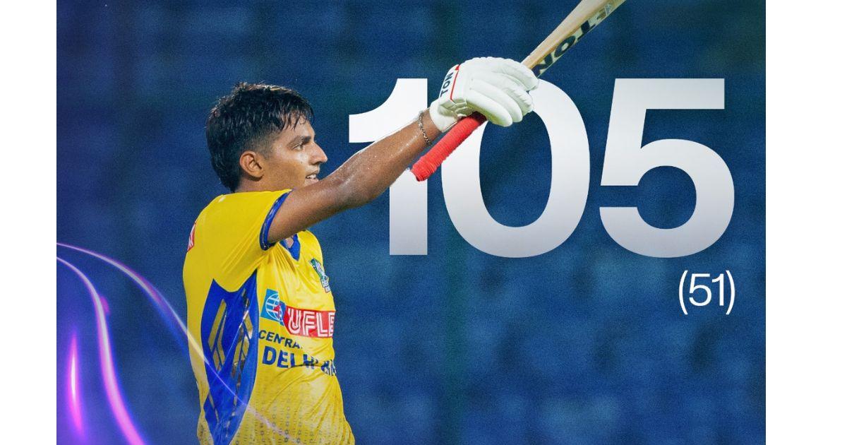 In a rain-truncated DPL game on Saturday, the right-handed 22-year-old set the tone with a 51-ball 105 with 14 fours and four sixes to propel Central Delhi Kings to 197/7, helping them win by 15 runs against North Delhi Strikers.