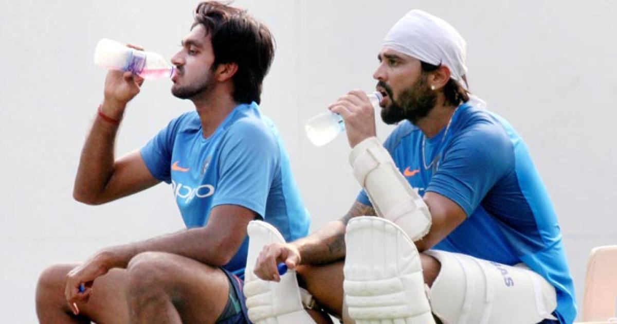 Murali Vijay, right, with Vijay Shankar during a India training session last year
