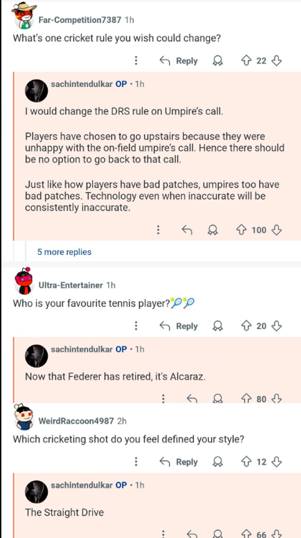 The former India captain, now Reddit's brand ambassador, struck a balance between insight and humour, giving candid responses about both cricket and life.