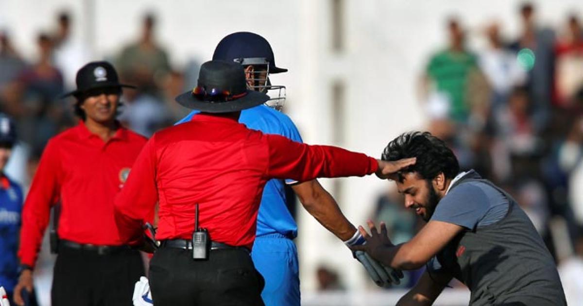 During the first warm-up match between India ‘A’ and England, a fan at the Brabourne Stadium, ran on to the field and bent to touch Dhoni's feet, and when the skipper told him not to step on the pitch, he obliged by jumping over.