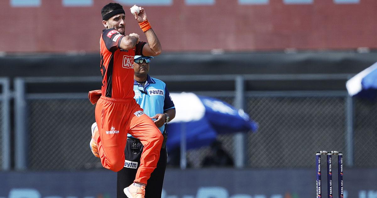 IMAGE: Sunrisers Hyderabad's Fazalhaq Farooqi bowls during the IPL 2022 match against the Royal Challengers Bangalore at the Wankhede Stadium in Mumbai on Sunday, May 8, 2022. Photograph:BCCI