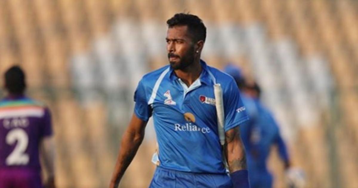 Hardik, who returned to competitive cricket last week after undergoing a back surgery, slammed eight fours and 10 sixes in his sizzling innings as Reliance 1 posted 252 for five against CAG in the Group C encounter.