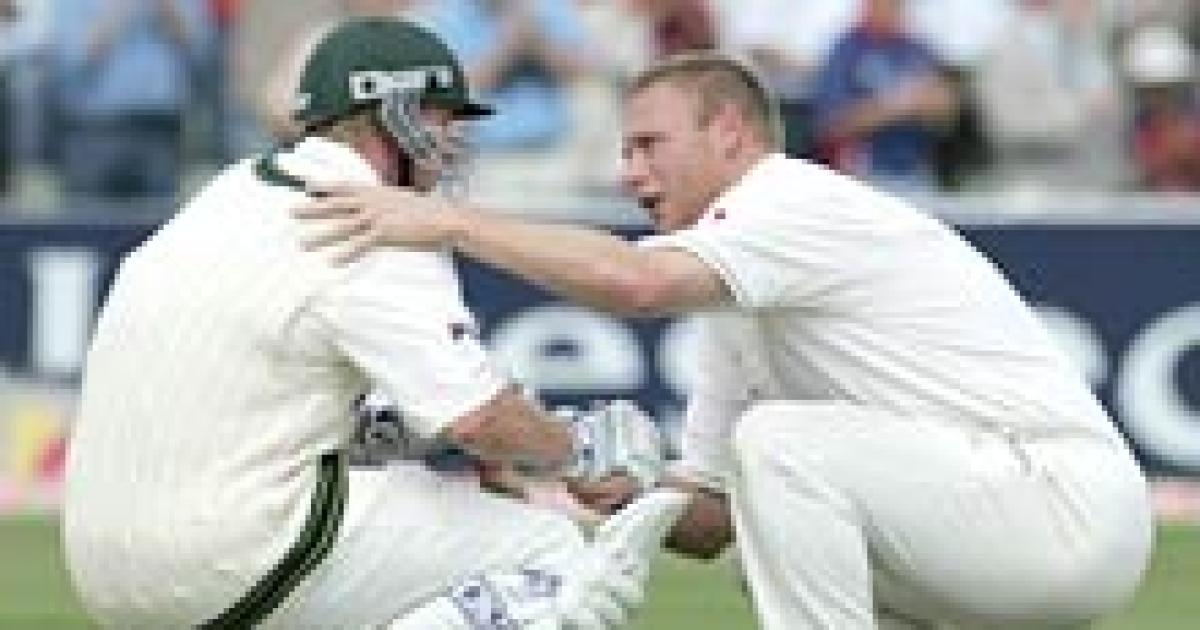 At the end, Andrew Flintoff bent down and put a consoling arm around the shoulders of Brett Lee, a man who moments before he had been trying to pummel in submission.
