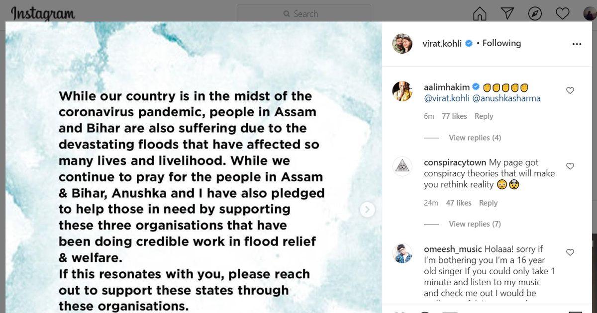 Anushka Sharma and Virat Kohli are making sure the Indian people and the media are made well aware about the flood disasters in Assam and Bihar.