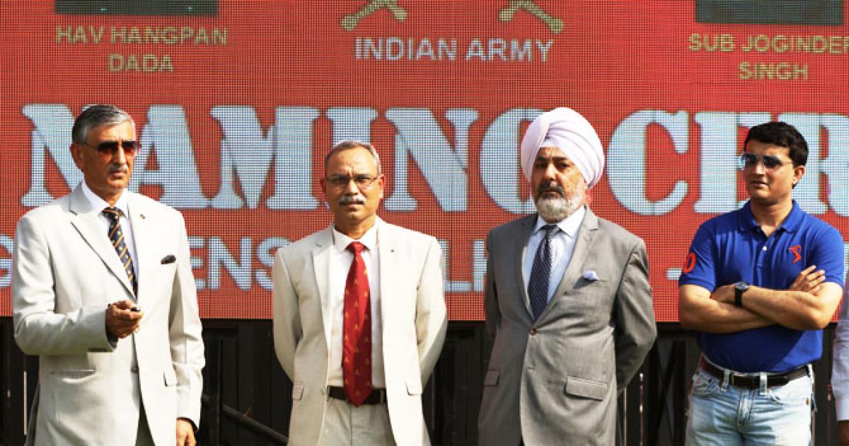 CAB president Sourav Ganguly unveiled the name plate of Havildar Hangpan Dada, who encountered terrorists in Naugam in Jammu and Kashmir and was awarded Ashok Chakra posthumously.
