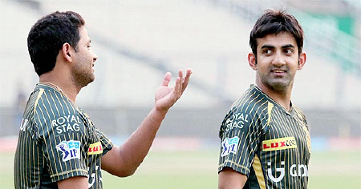 Image: Gautam Gambhir (right) and KKR teammate Piyush Chawla at a training session
