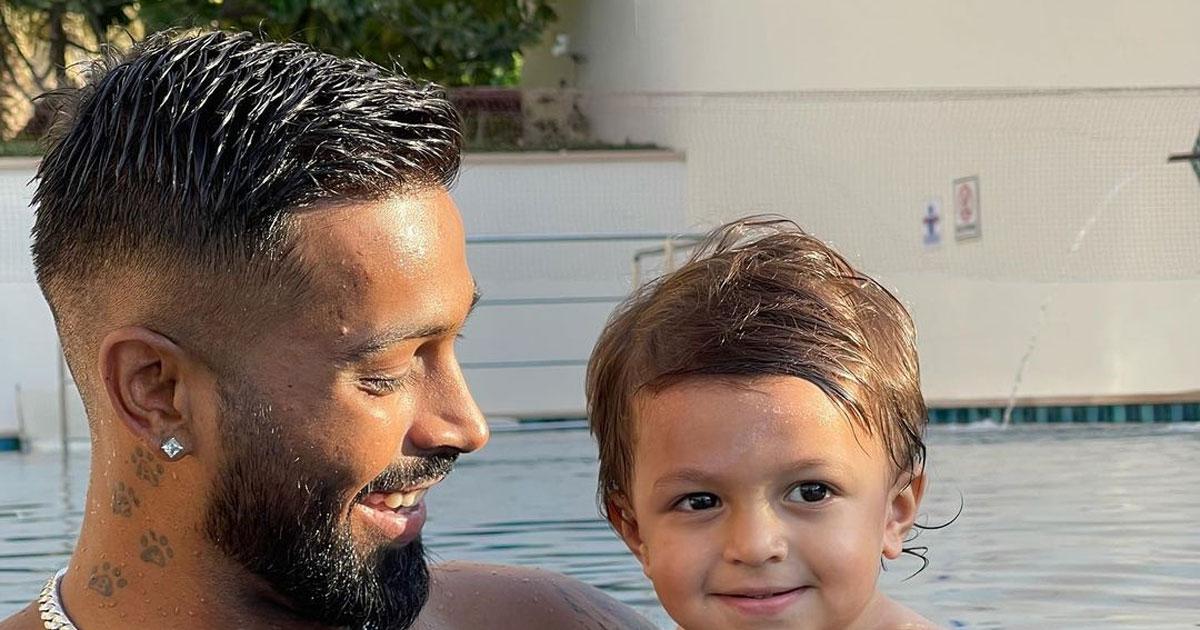 Hardik Pandya and his 18-month-old son Agastya made most of their day in the pool as the Gujarat Titans captain took a break from preparations for IPL 2022.