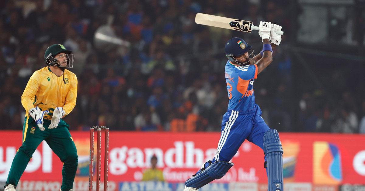 IMAGE: Hardik Pandya made a memorable comeback to the Indian team, smashing a blistering half-century to power India to a thumping 101-run win over South Africa in the first T20 International. Photograph: BCCI/X