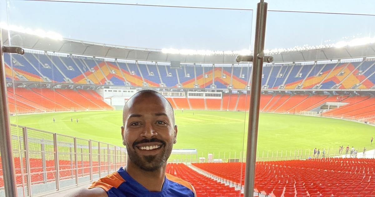 Later Pandya took to Twitter to share a selfie taken with the Motera stadium in the background. "It feels surreal to be out right here on the world’s largest cricket stadium, Motera. Completely magnificent," the tweet read.