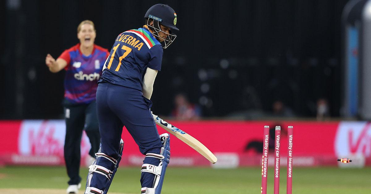Chasing 178, India was off to the worst possible start as pacer Katherine Brunt bamboozled the big-hitting Shafali Verma for a duck before India had opened their score.