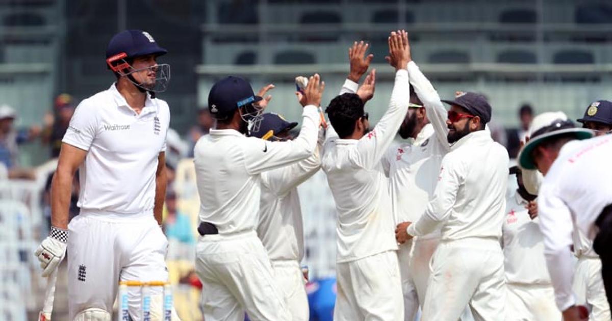 Left-arm spinner Ravindra Jadeja bowled India to an innings and 75-run victory at the MA Chidambaram Stadium in Chennai, claiming seven of the 10 English wickets that tumbled in the final two sessions.