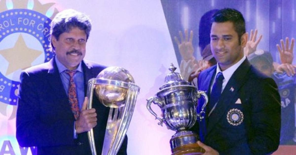 Image: Mahendra Singh Dhoni with Kapil Dev, left. Photograph: PTI