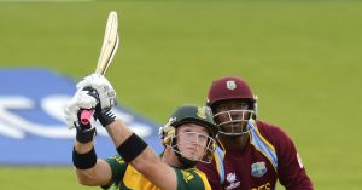 He was out caught in the deep off Pollard's medium pace, mistiming a lofted on-drive. Duminy fell shortly after for two, caught behind off Bravo trying to swing the ball to leg.