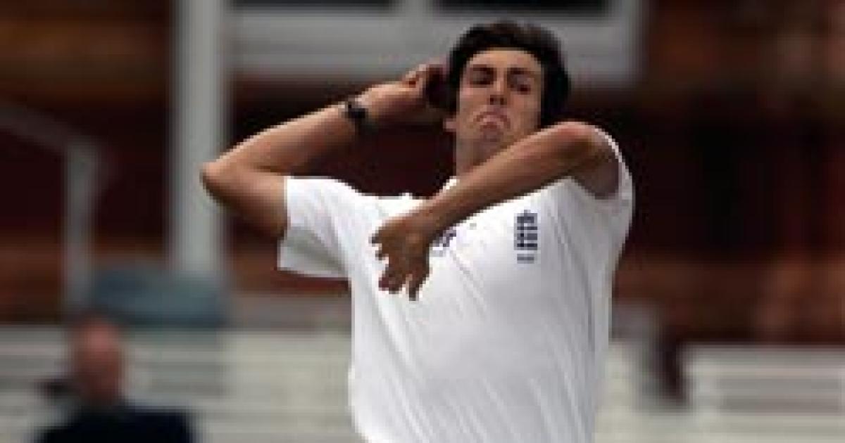Image: England's Steve Finn bowls in the first Test against Bangladesh at Lords on May 29, 2010.