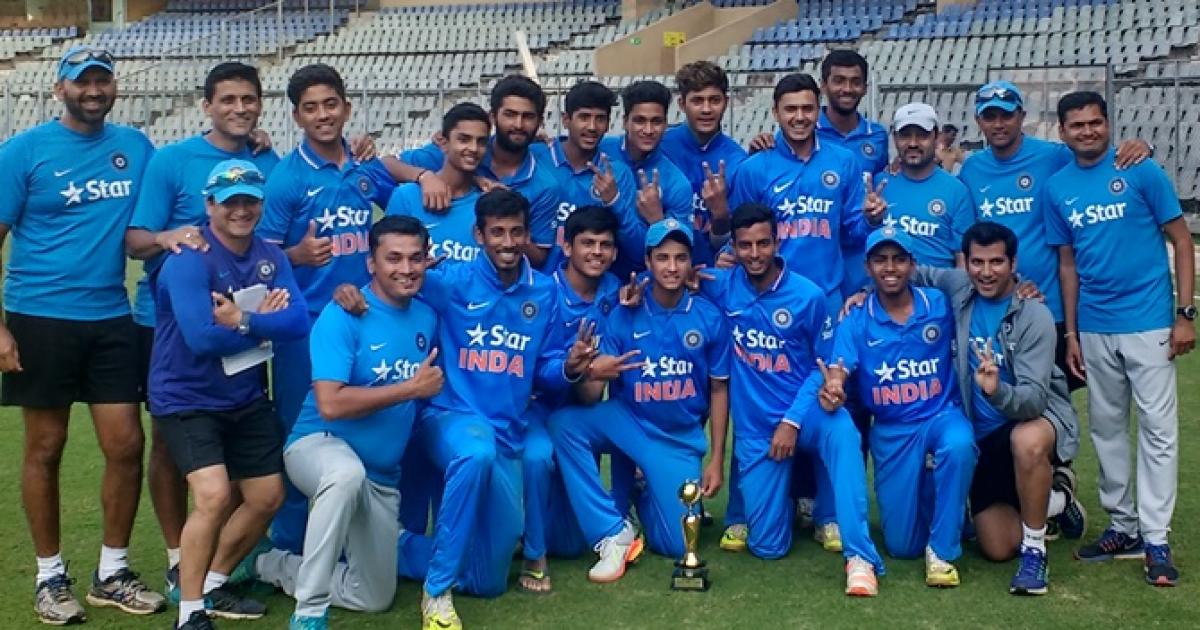 Image: A file photo of India's Under-19 team after winning the ODI series against England in Mumbai, earlier this year