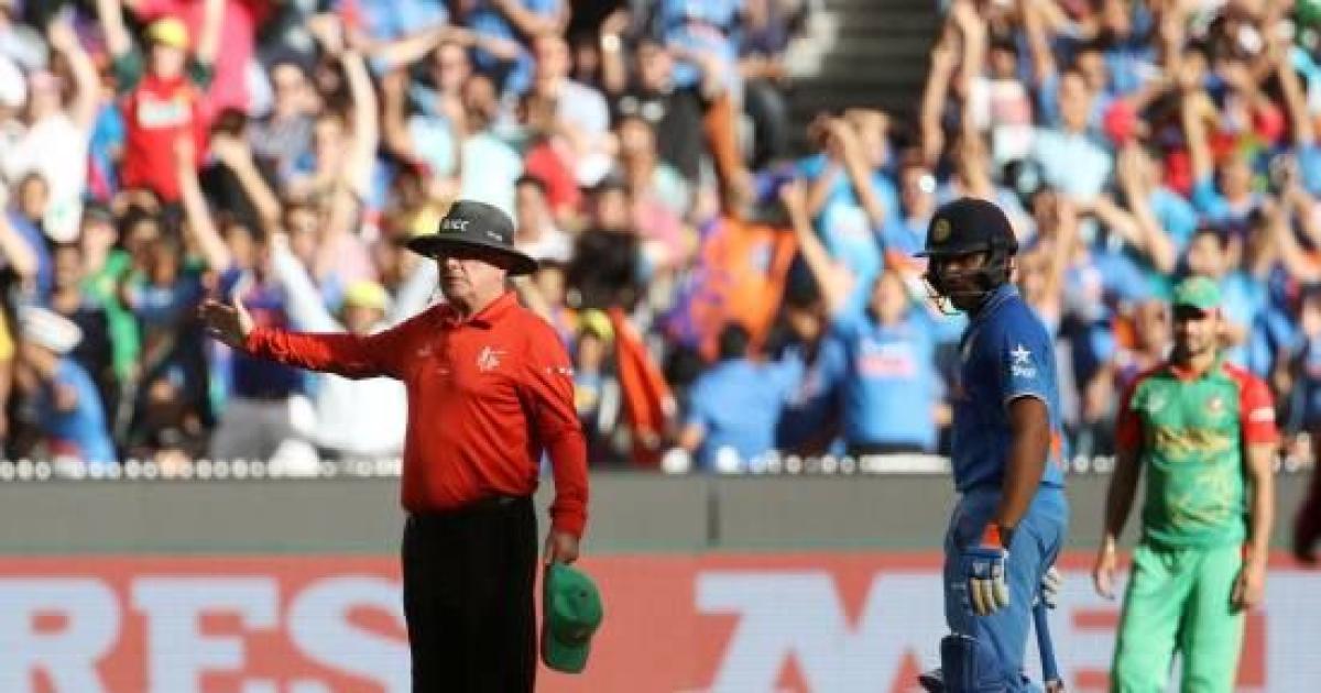 India opener Rohit Sharma was caught in the deep off a delivery from paceman Rubel Hossain that umpire Aleem Dar deemed was an above waist-height no-ball but replays contradicted his opinion, showing the delivery was fair.