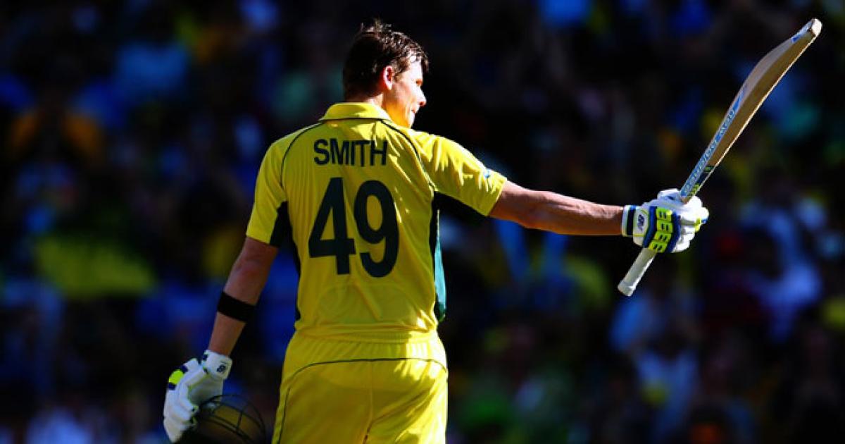 Smith plundered 14 runs off Mohammed Shami in the 33rd over, a six and a four off successive balls taking him to his first century of the World Cup. It came in 89 balls with 10 fours and two sixes.