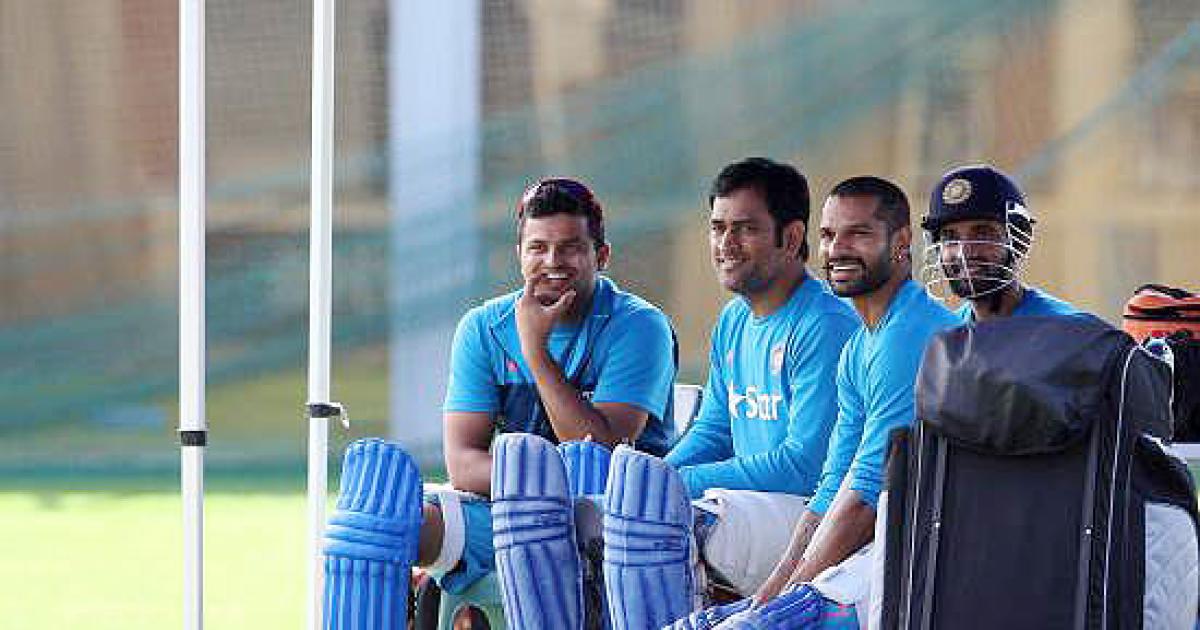 Once between the session, Dhoni stopped serving and summoned Raina for a mid-pitch discussion.