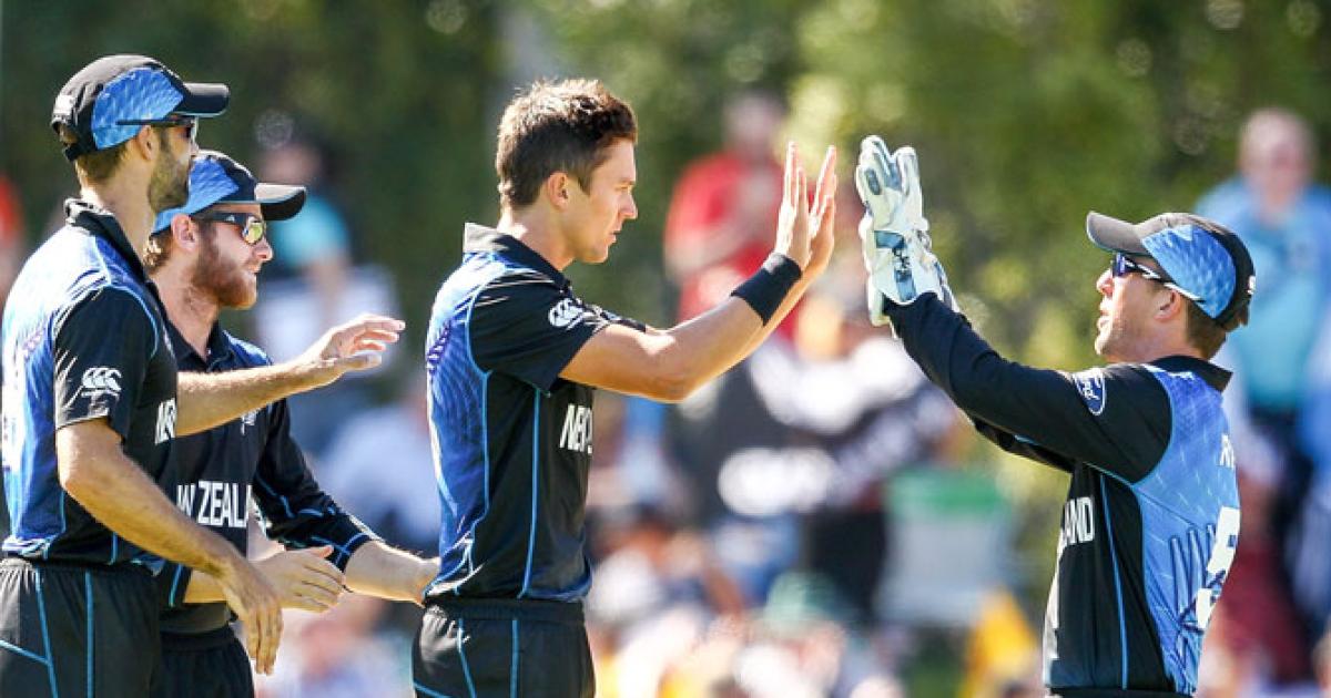 New Zealand had earlier destroyed Scotland's top order with a superb display of swing bowling from Boult and Southee, who reduced Preston Mommsen's side to 12 for four in the fifth over.