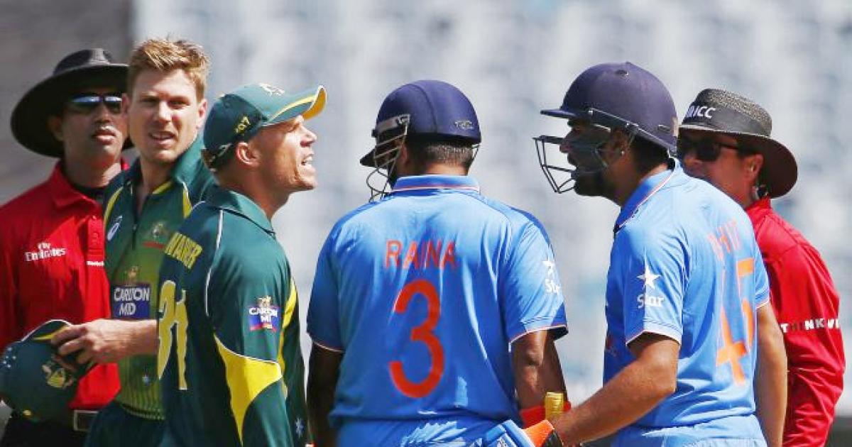 Australia's David Warner argues with India's Rohit Sharma during the recently concluded ODI tri-series. Photograph: David Gray/Reuters