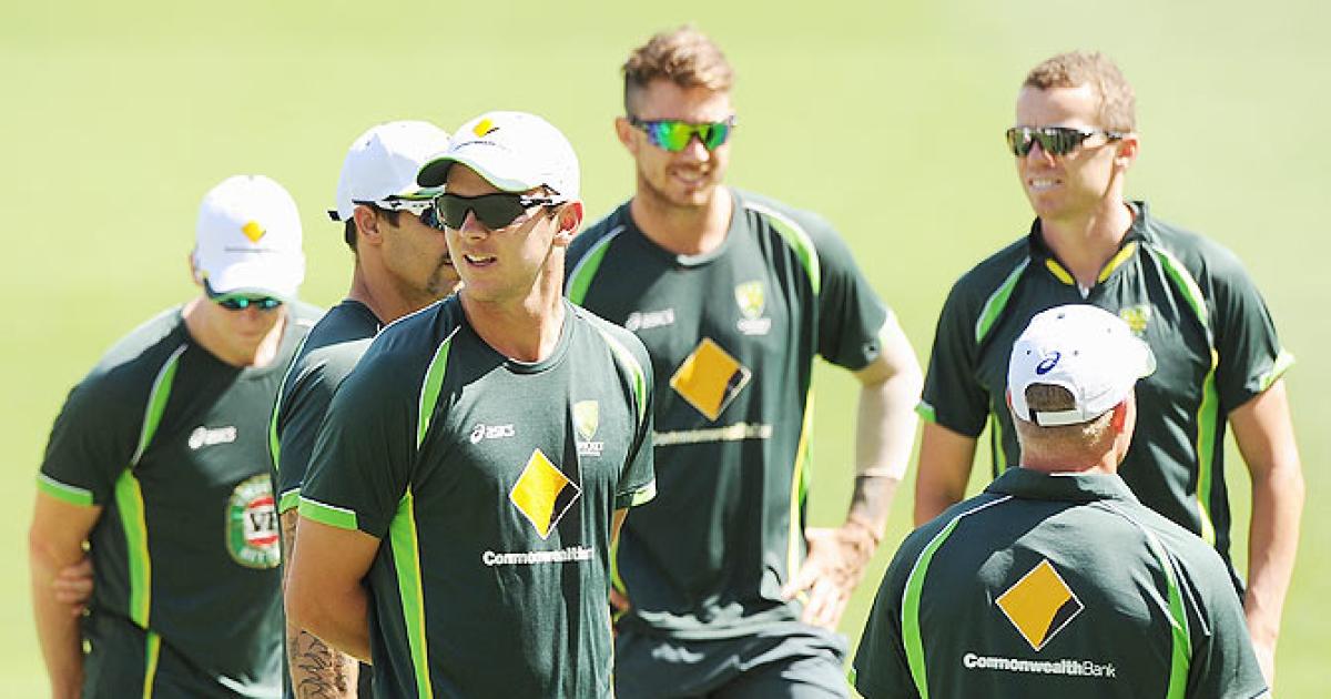 Team: Smith, Brad Haddin, Mitchell Starc, Josh Hazlewood, Mitchell Johnson, Nathan Lyon, Shaun Marsh, Mitchell Marsh, Chris Rogers, David Warner, Shane Watson.