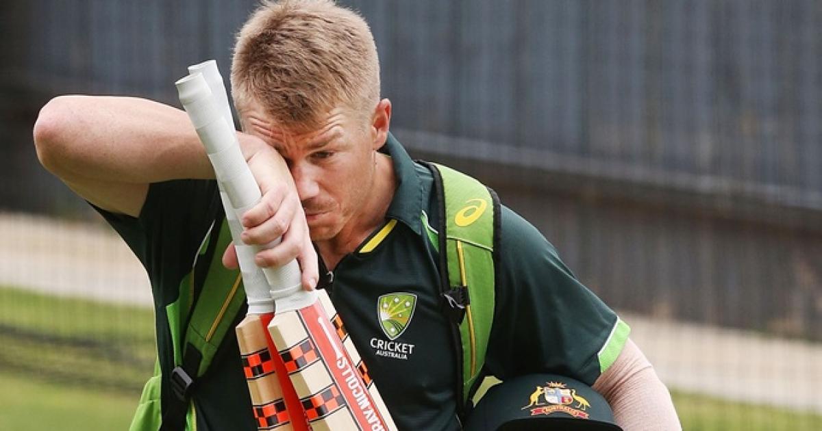 David Warner finishes batting during an Australian nets session at Adelaide
