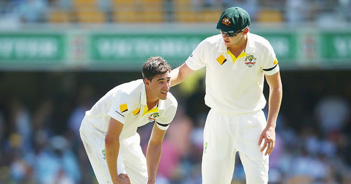 There were more problems for Australia's pace bowlers later on a sweltering day at the Gabba with Mitchell Starc requiring a break because of heat stress and debutant Josh Hazlewood given a rest after suffering cramping in his 13th over.
