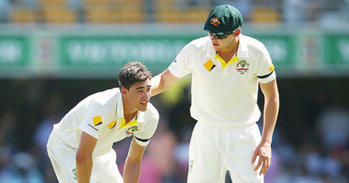 Peter Siddle of Australia checks on teammate Mitchell Starc of Australia on Day 1 of the 2nd Test match against India at The Gabba in BrisbaneAustralia's physiotherapist Alex Kountouris said Marsh's injured hamstring would keep him out of the Sydney Test from January 6 and the focus is now ensuring his comeback in the upcoming ODI World Cup in February-March.
