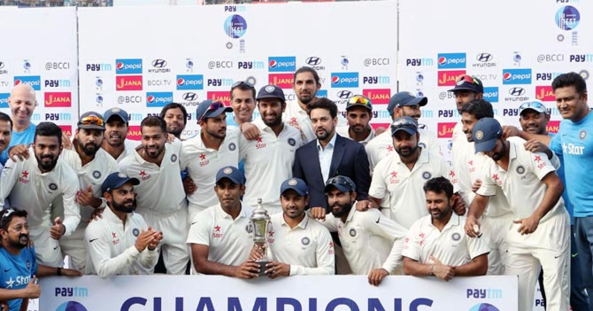 The series win has helped India gain five points and it has moved to 120 points in the last Test team rankings update of 2016, 15 points ahead of second-placed Australia.