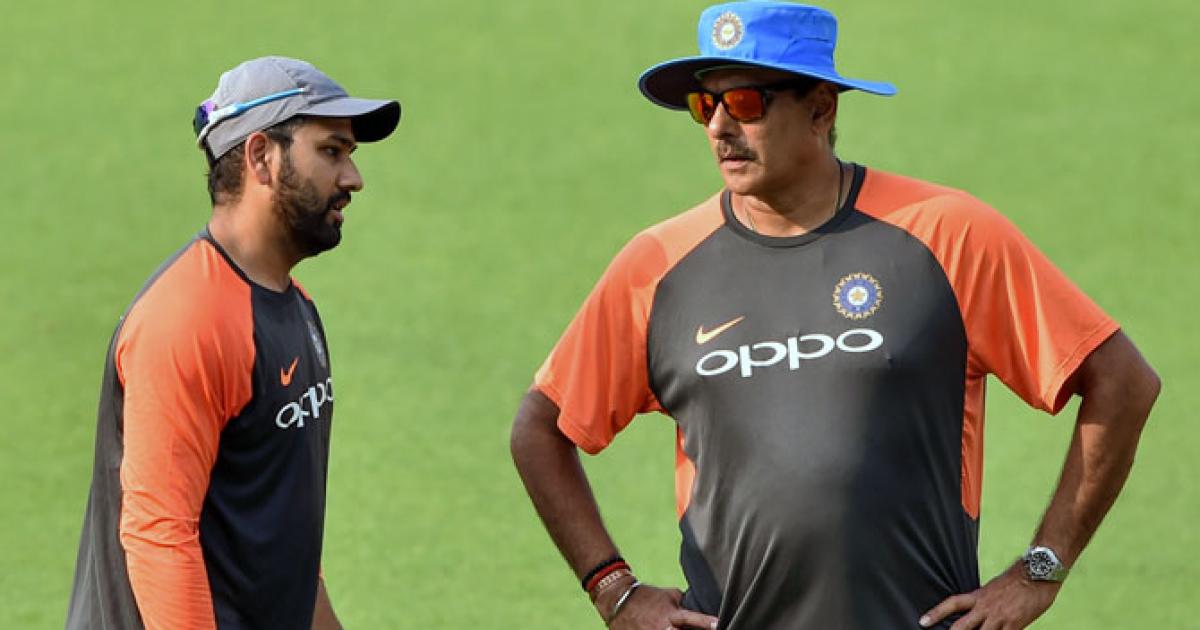 IMAGE: India captain Rohit Sharma, left, with coach Ravi Shastri. Photograph: PTI