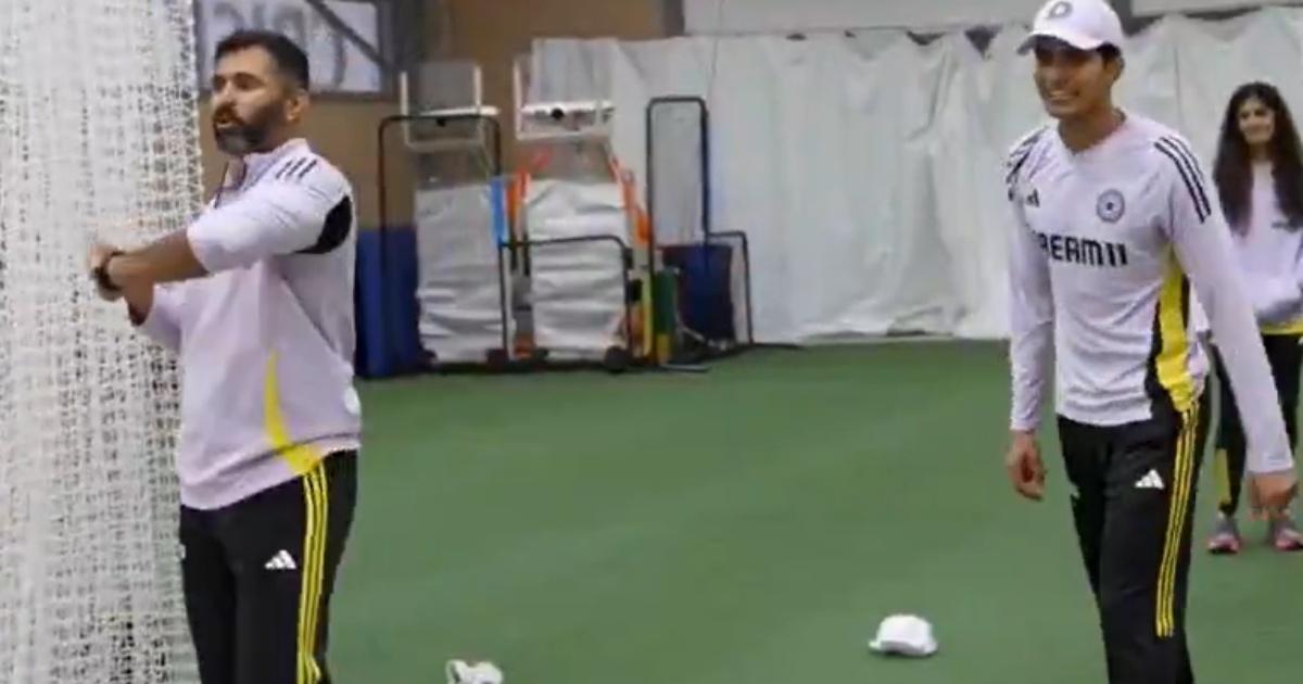 In a lighter moment captured on camera, star batter Shubman Gill and Assistant Coach Abhishek Nayar engaged in a friendly stump-hitting drill.