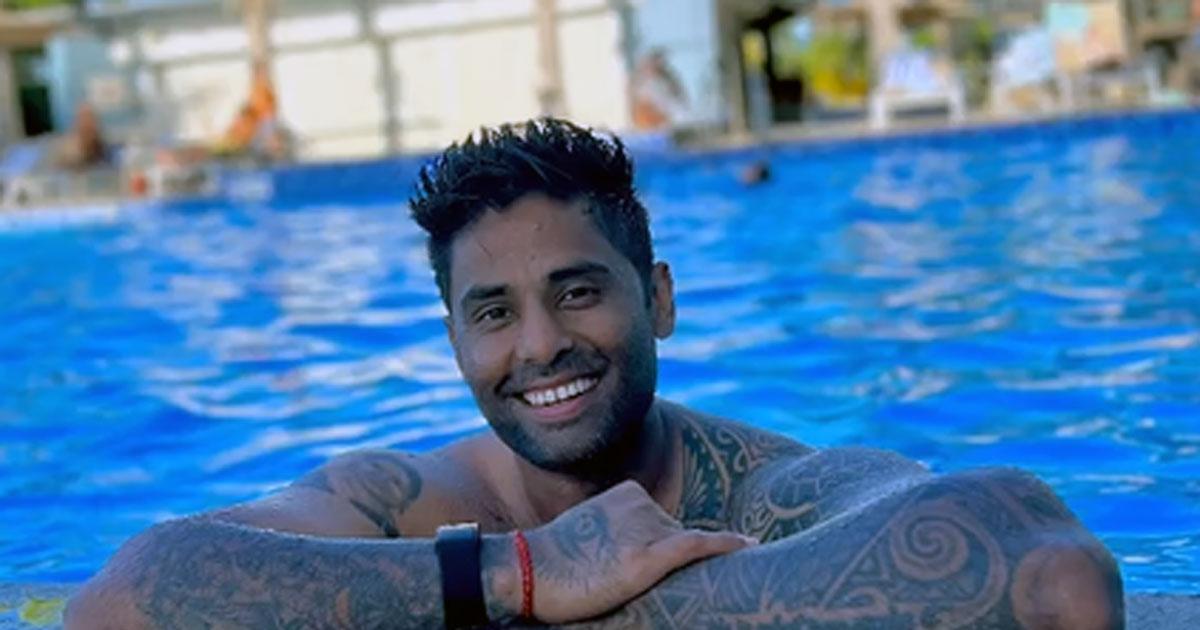 Suryakumar Yadav chilled in the pool as he relaxed ahead of India's second T20 International against West Indies in Guyana on Sunday.
