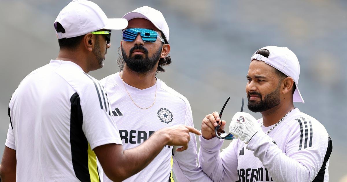 IMAGE: Ravichandran Ashwin, K L Rahul and Rishabh Pant during India's practice session. Photograph: BCCI/X