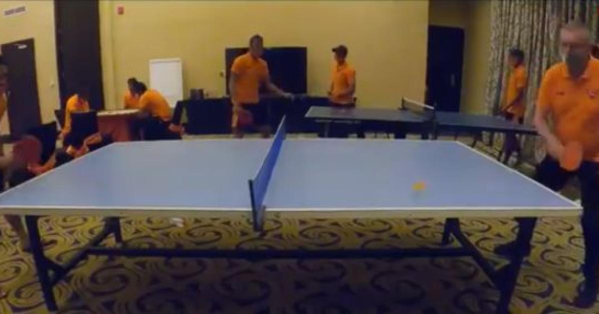 SunRisers Hyderabad batsman Manish Pandey and Coach Trevor Bayliss were involved in a different ball game altogether when they competed at a game of table tennis.