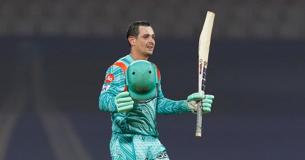 De Kock completed his hundred in style, hitting a boundary off Andre Russell on the off-side in the 18th over. On completing his century, de Kock dropped to his knees and seemed overcome with emotion as he shed a few tears while the entire Lucknow contingent were on their feet in admiration, giving him a standing ovation.