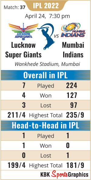 Game 37 of IPL 2022 will see the Lucknow Super Giants take on the Mumbai Indians at Wankhede stadium in Mumbai starting 1930 IST.