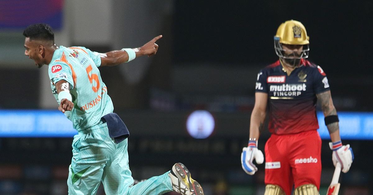 After LSG Skipper K L Rahul won the toss and chose to bowl, RCB lost two wickets in the first over of the game to Dushmantha Chameera.
