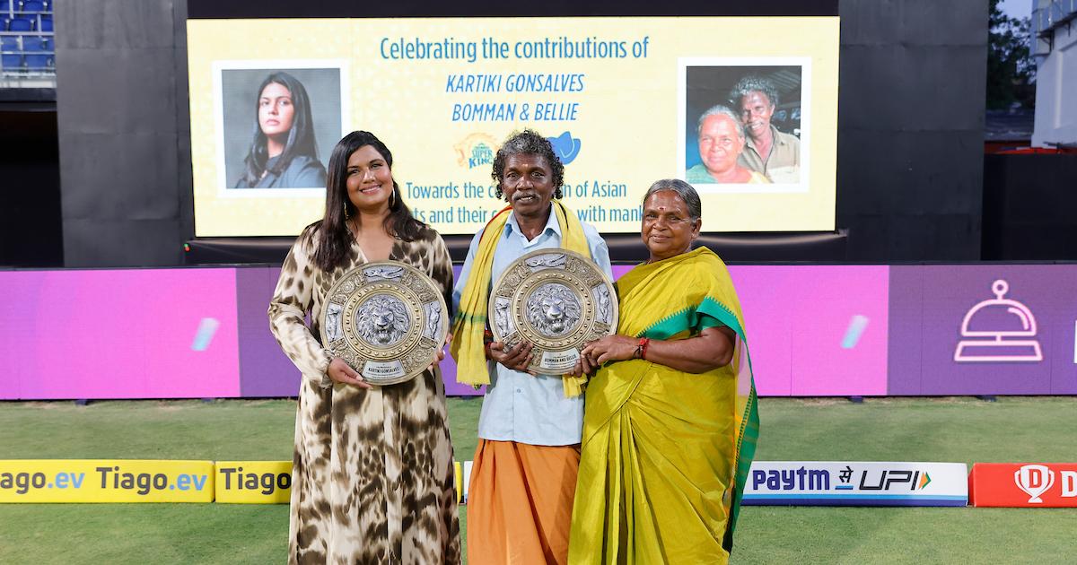 Before the first ball in IPL 2023 game 55 was bowled, the Chennai Super Kings honoured Oscar-winning film-maker Kartiki Gonsalves (The Elephant Whisperers) and elephant caregivers Bomman and Bellie -- the stars of the documentary.