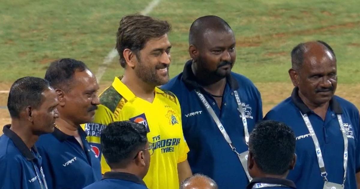 After the Chennai Super Kings's seven wicket win over the Mumbai Indians on Saturday, April 8, 2023, the ground staff at the Wankhede stadium requested Dhoni for a photograph.
