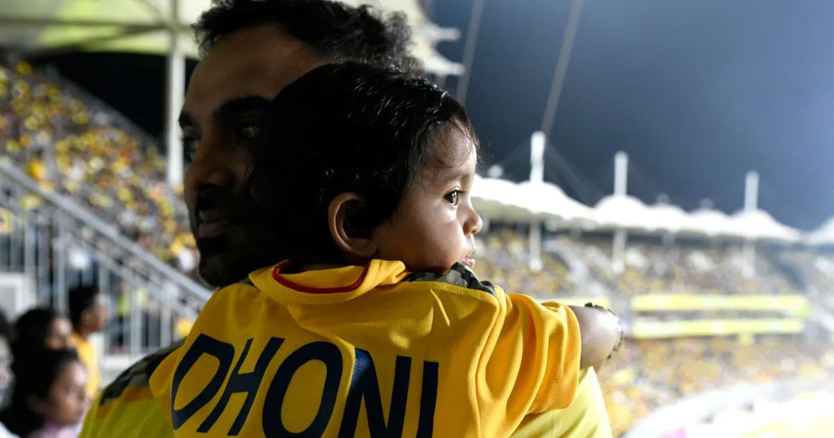 IMAGE: This infant may be too young to follow the game, but the father is clearly a fan of Thala Dhoni.