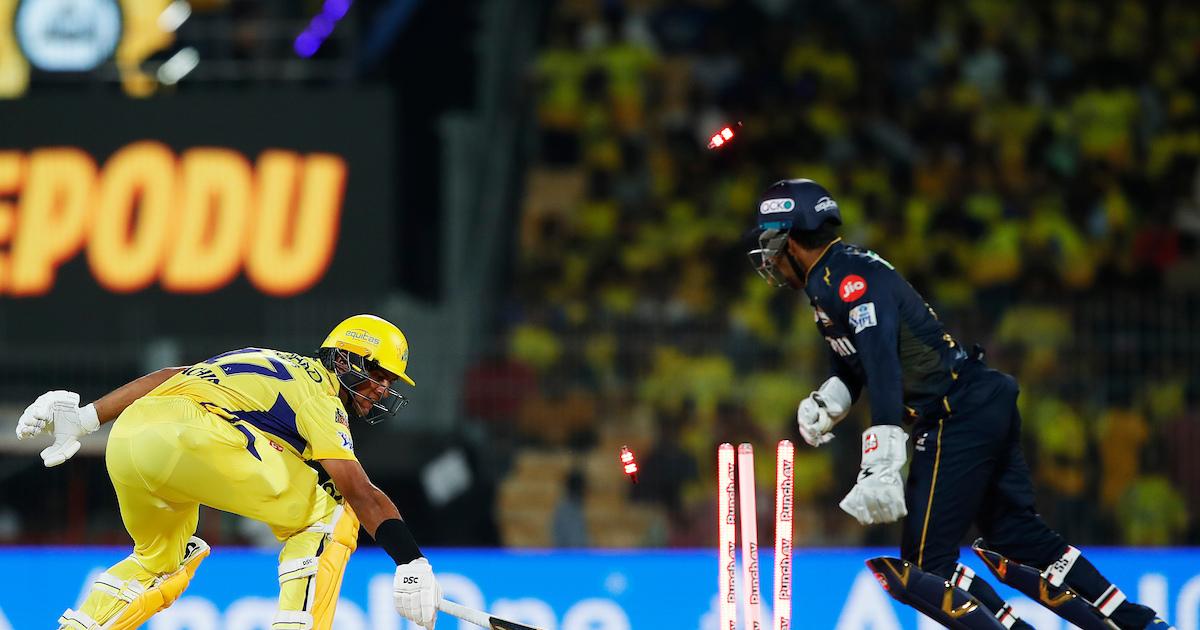 Shankar has produced some match-winning knocks since being part of the GT squad. On Tuesday he started off watchfully and hit a six off Tushar Deshpande. But a couple of overs later he was sent back after Dhoni dove to his right to take a catch after Shankar attempted a drive only to get a thick outside.